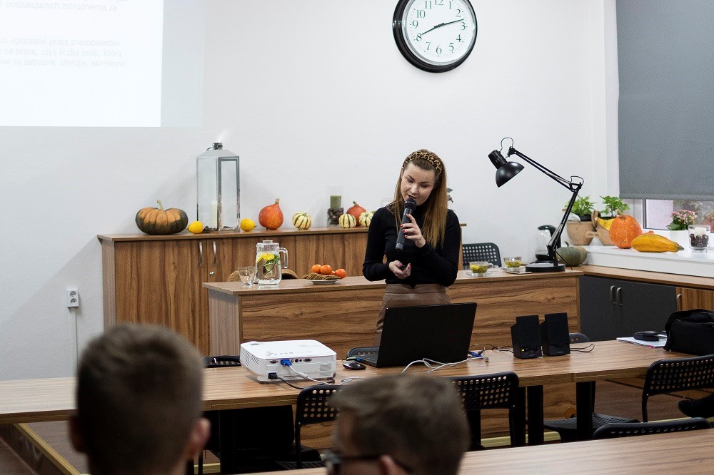 Istotnym punktem spotkania było także przedstawienie i omówienie zróżnicowanej oferty Powiatowego Urzędu Pracy w Koninie skierowanej do osób młodych (staże, bon na zasiedlenie, dotacje na rozpoczęcie działalności gospodarczej, refundację kosztów wyposażenia stanowiska pracy, szkolenia).