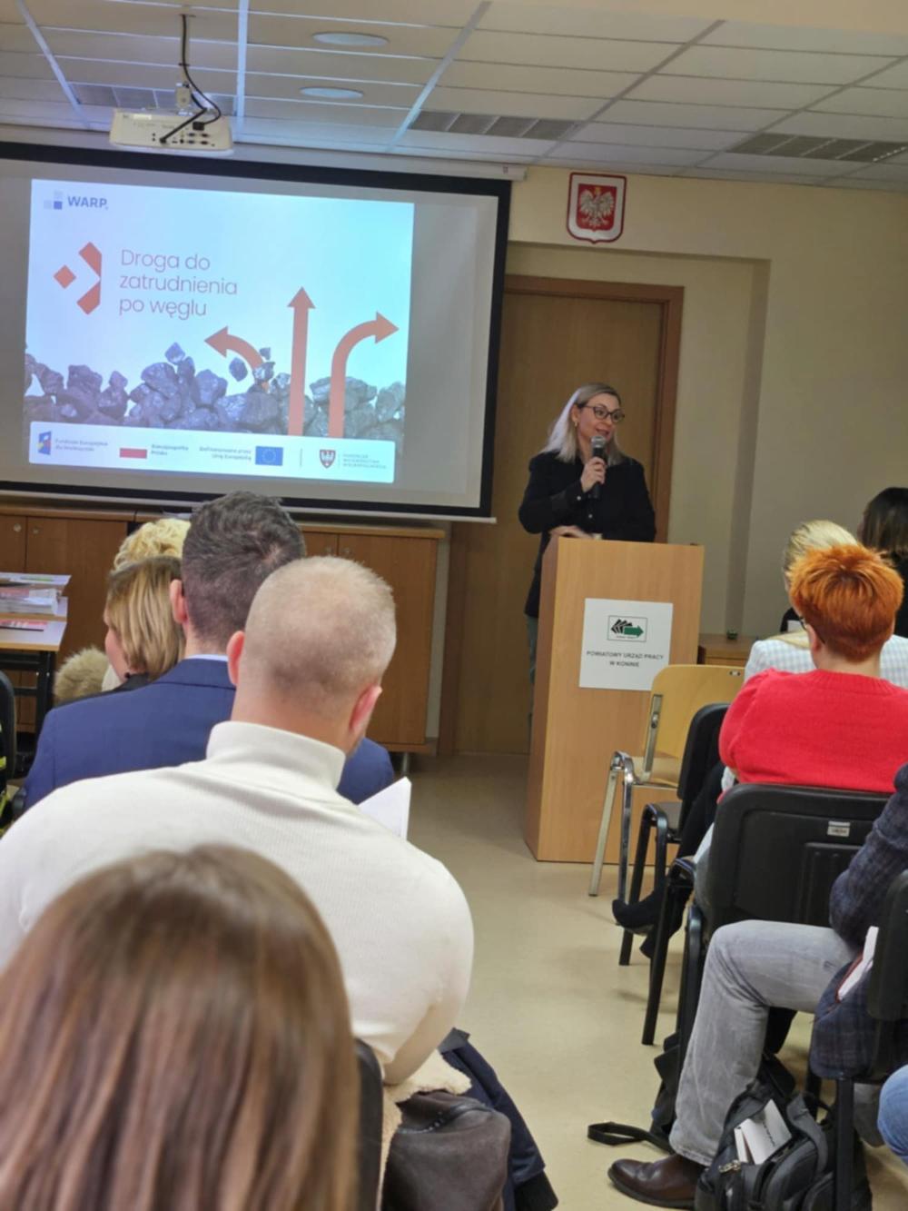 Na początku spotkania Pani Anna Biegasiewicz Dyrektor Powiatowego Urzędu Pracy w Koninie zaznaczyła, że jest to projekt o niespotykanej dotąd skali, czy w Polsce czy w Europie. Nikt nie realizuje tak obszernego wsparcia dla pracowników z branży paliwowo – energetycznej i ich rodzin. Poinformowała również, że Powiatowy Urząd Pracy w Koninie realizuje zadania z obu ścieżek, które przedstawili na spotkaniu Partnerzy projektu.